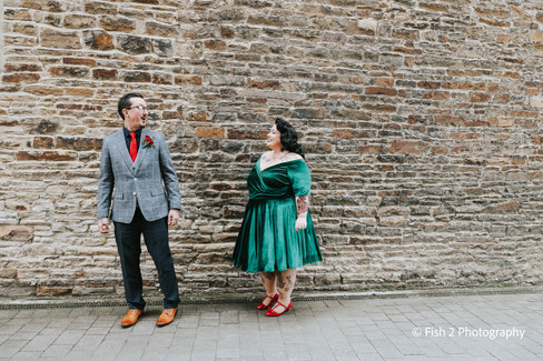 Celina looked stunning in her green velvet dress and Conrad had a rocker look. We walked around the town centre from the castle to the registry office to capture photos for an hour before the ceremony and it was so much fun.