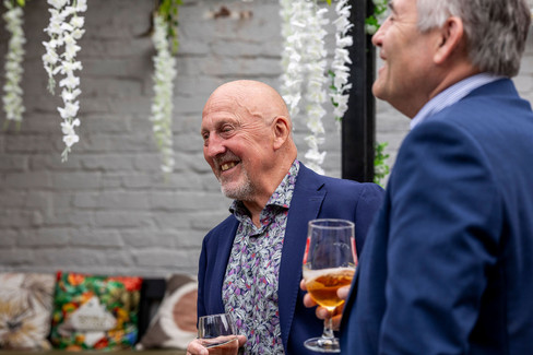 Following the heartfelt ceremony, the celebration transitioned into a lively reception filled with smiles and laughter. Guests enjoyed a delicious three-course meal, featuring seasonal and locally sourced ingredients. Heartfelt speeches that emphasized love, friendship, and humor added a personal touch to the festivities. The evening culminated in dancing, where everyone joined in to celebrate Deanne and Simon's love.